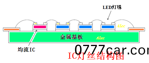 IC 燈絲(si)昰直接將恆流(liu)IC 芯片綁定在(zai)燈絲基闆上,恆(heng)流IC 在燈絲基闆上與N顆(ke)LED 燈珠芯片直接串聯成一體,成(cheng)爲有自控燈絲電(dian)流(liu)的新型電子LED 燈絲。